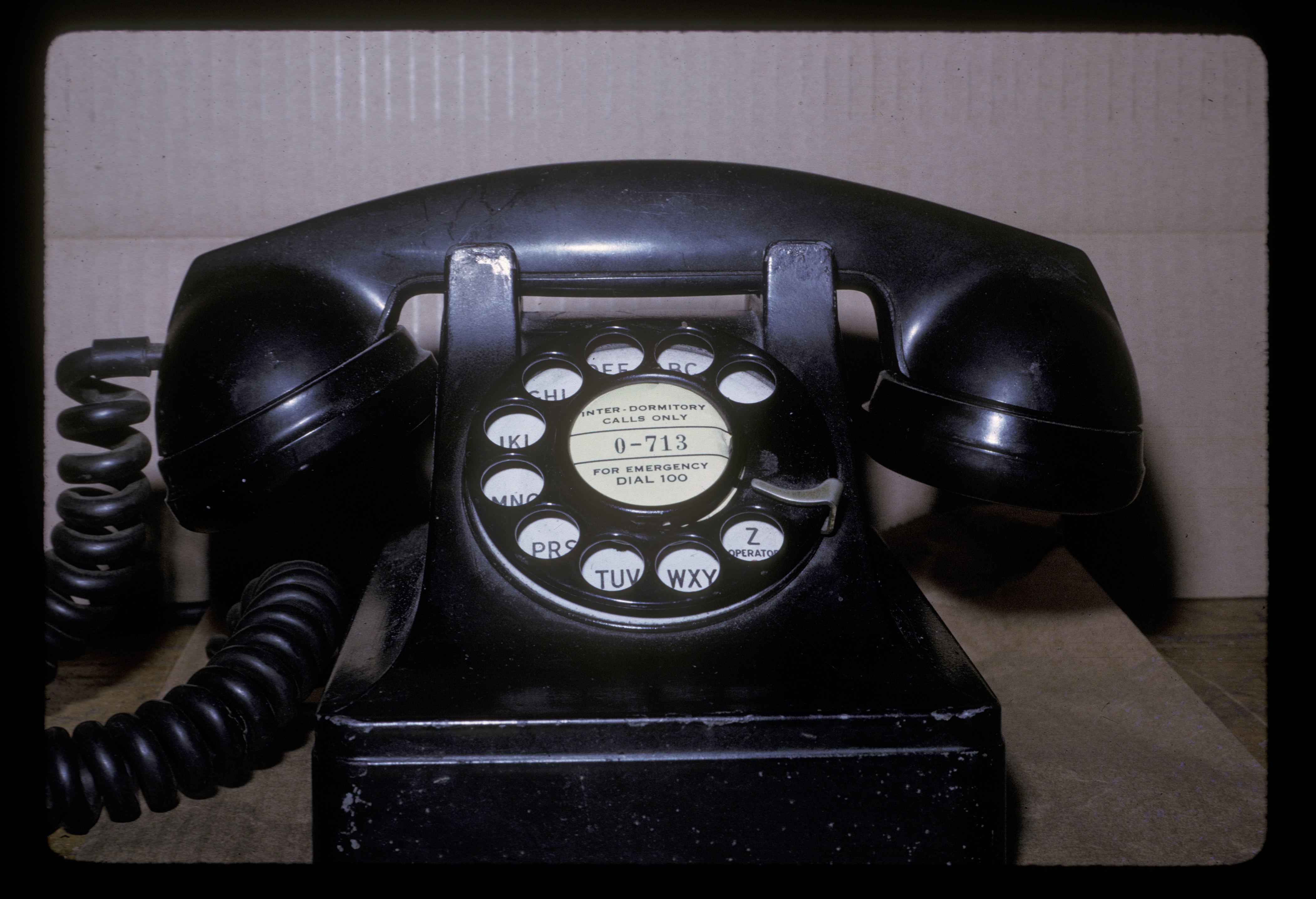 | Summer 1962 At some time prior to that summer, dial telephones were installed in the Ashdown rooms. Ashdown had once been a residential hotel, and most of the rooms were parts of suites consisting of rooms A, B, and C, accessible from a small entryway off the main hall. The manual telephone had been located in the entryway and had been shared amongst the three rooms. When the dial phones were installed, the C room got a private line, but the A and B rooms got party lines wired from the original wiring that had served the entryway phone. The theory was that the A and B rooms were unlikely to want to call each other. The ringing was individual, as the A room rang from “tip” to ground and the B room rang from “ring” to ground. Unfortunately, the ground wire connections were rather fragile, and often broke. The result was that both phones would ring when either was called. The graduate students were much more gentle with their phones than the undergrads, but they complained much more loudly (and to more important people) when there was a service problem. As I recall, the telephones used in Ashdown were Western Electric model 302's. A telephone of that type is shown in the photo, although I believe the telephone shown was the East Campus desk "house phone".
