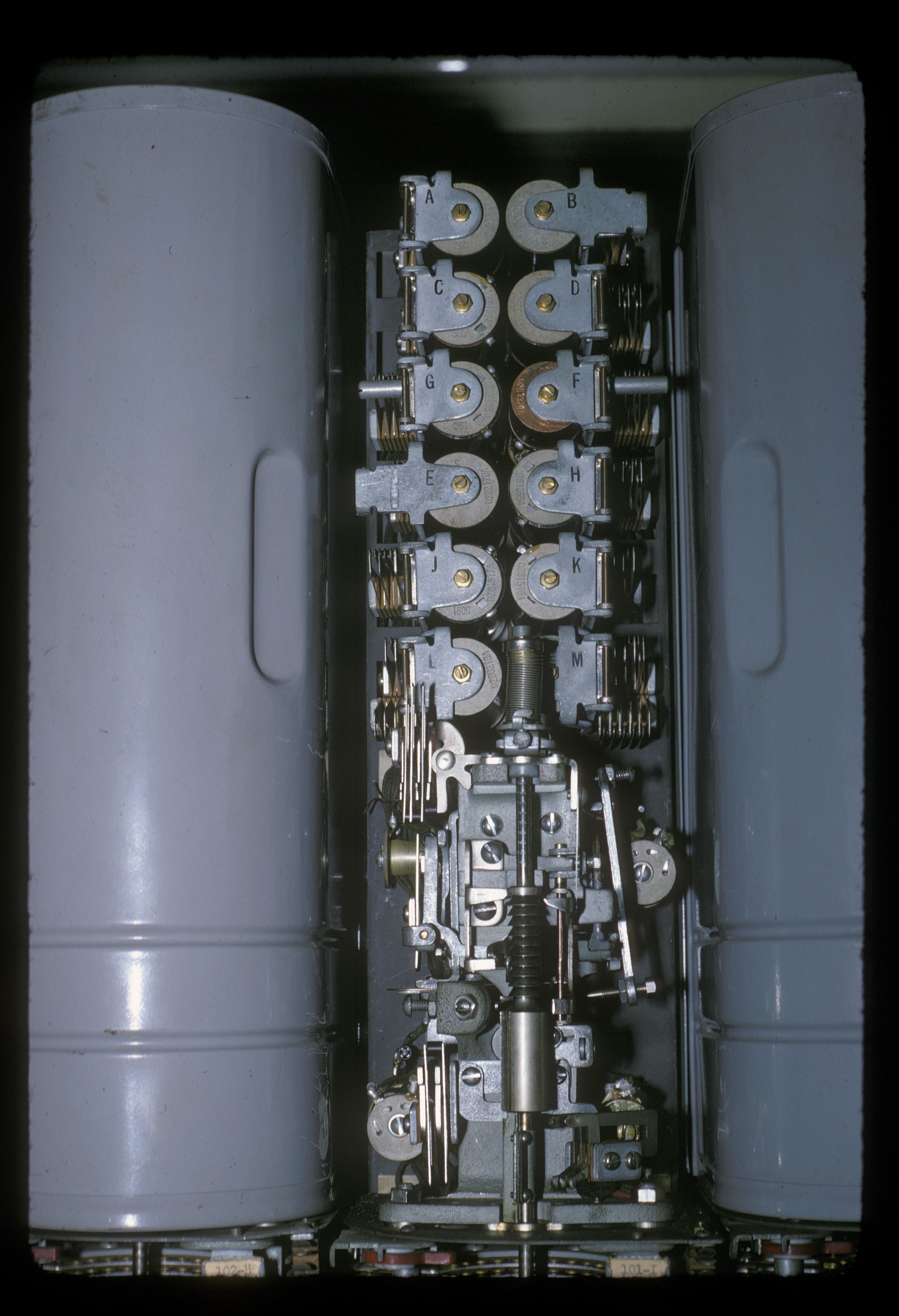| EQUIPMENT - Switches Dormphone was entirely a Strowger or Step-by-Step system. The calling party was connected to the switching equipment by either lineswitches or linefinders. Both are shown in the Home Page picture, which shows Everett Butcher working on the lineswitches. All dialled digits except the last two were recorded on selector switches, each of which recorded one digit and then searched for a subsequent switch to accept the next digit(s). The final two digits were recorded on connector switches, the most impressive of which was the "trunk and level hunting" connector. While the general structure of one of these (shown at left) was the same as the other switches, it had a LOT more relays. If someone called a line that was busy, but the called location had more one line, the switch would automatically advance to the next line. We once jiggered one of these switches to hunt the maximum number of lines (100); it took 11 seconds. The dormitory desks and the student radio station (the original WTBS) were the only places that had multiple lines, but I think the maximum "hunt group" for these was three lines.