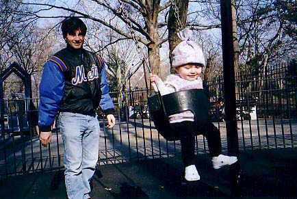 Emma Stevens, 6 to 9 months / Daddy pushing Emma in the swing
